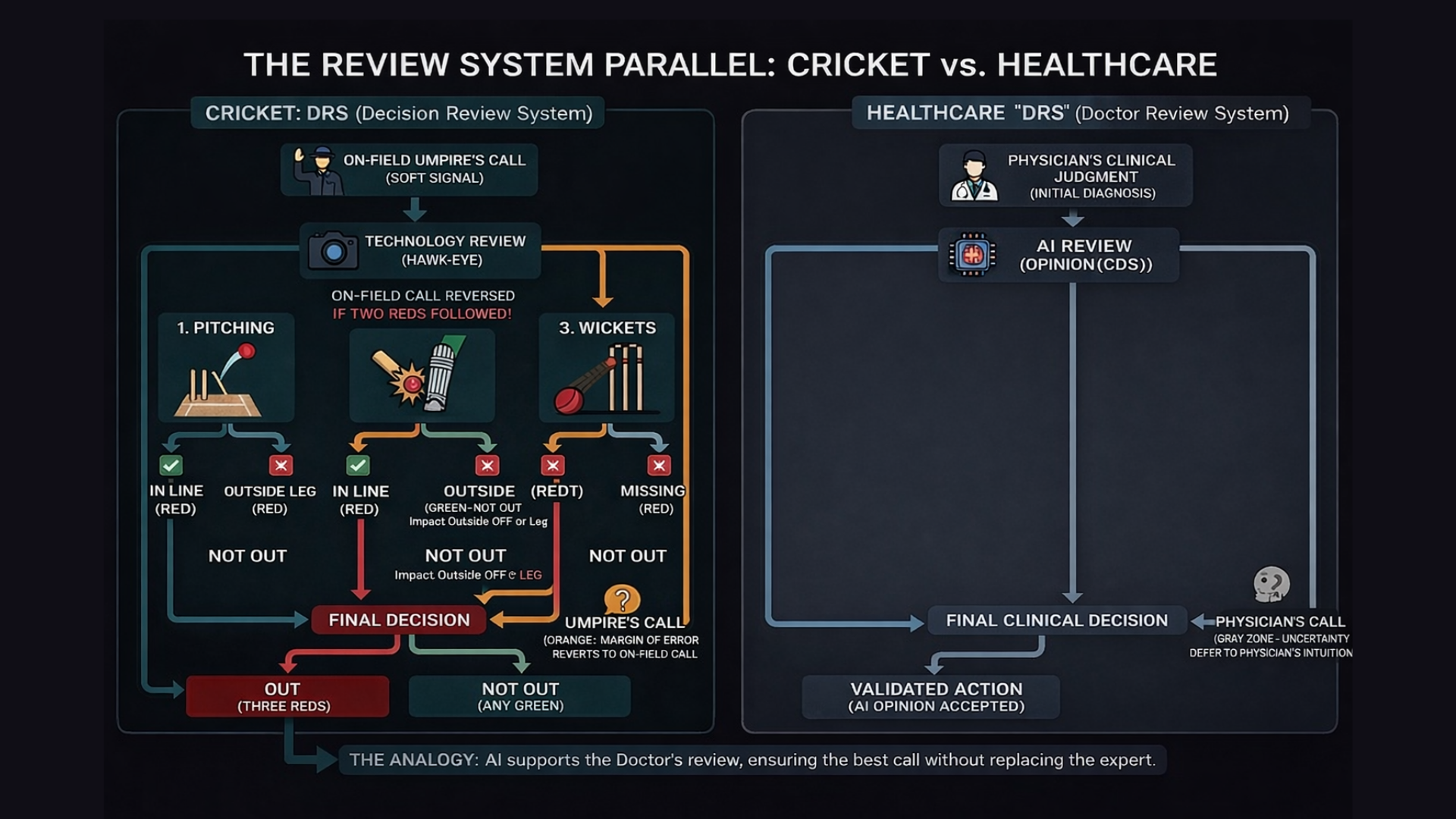 And when the case enters the Orange Zone, when uncertainty is high and the margin is thin, the system must respect Umpire’s Call. In healthcare, that means deferring to physician judgment.