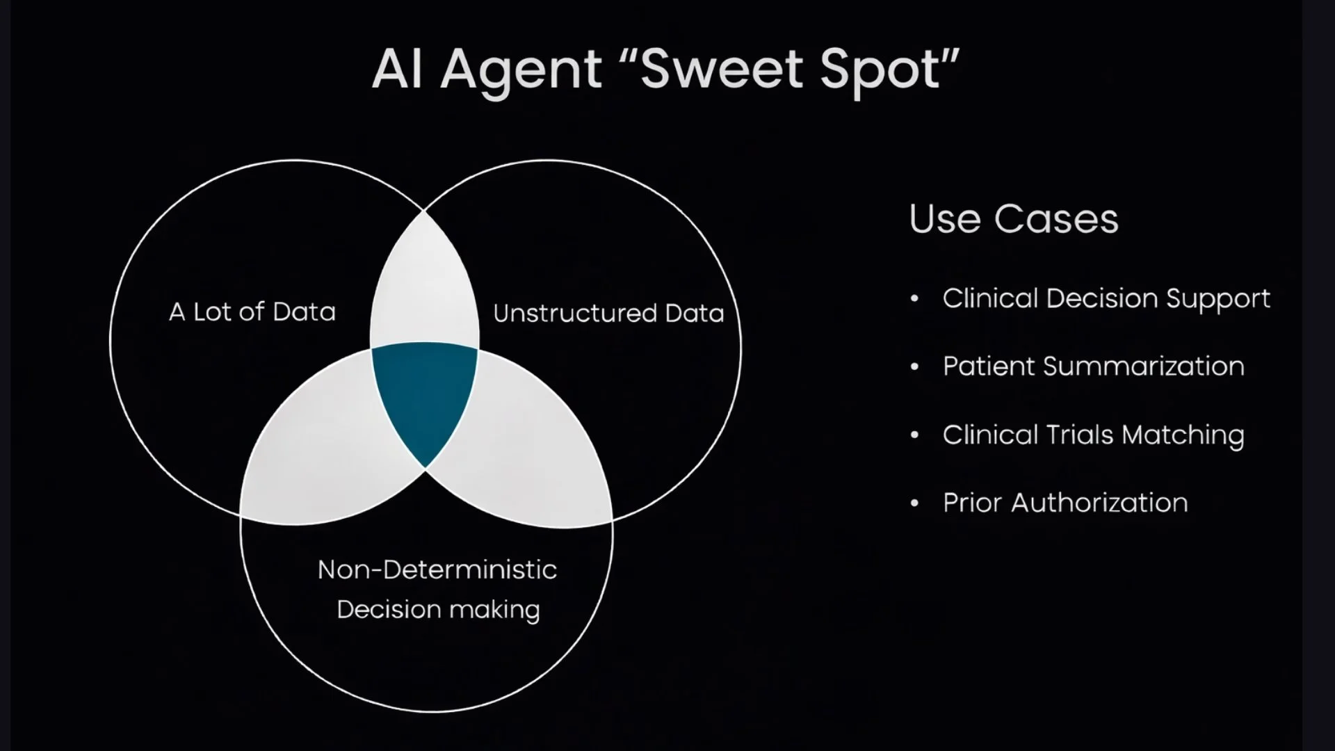 This non-deterministic environment is exactly where LLM-based agents add value. They can synthesize guidelines, patient history, and contextual nuance into structured insights that support human judgment.